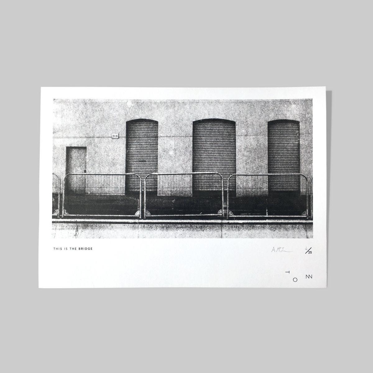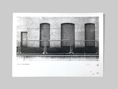 Limited edition black and white screen print, hand produced by artist Adam McIlwaine, specially commissioned by TONN Recordings for This Is The Bridge, A2 42 cm x 59.4 cm, edition of 25, on heavy grade artist quality paper, signed by the artist.